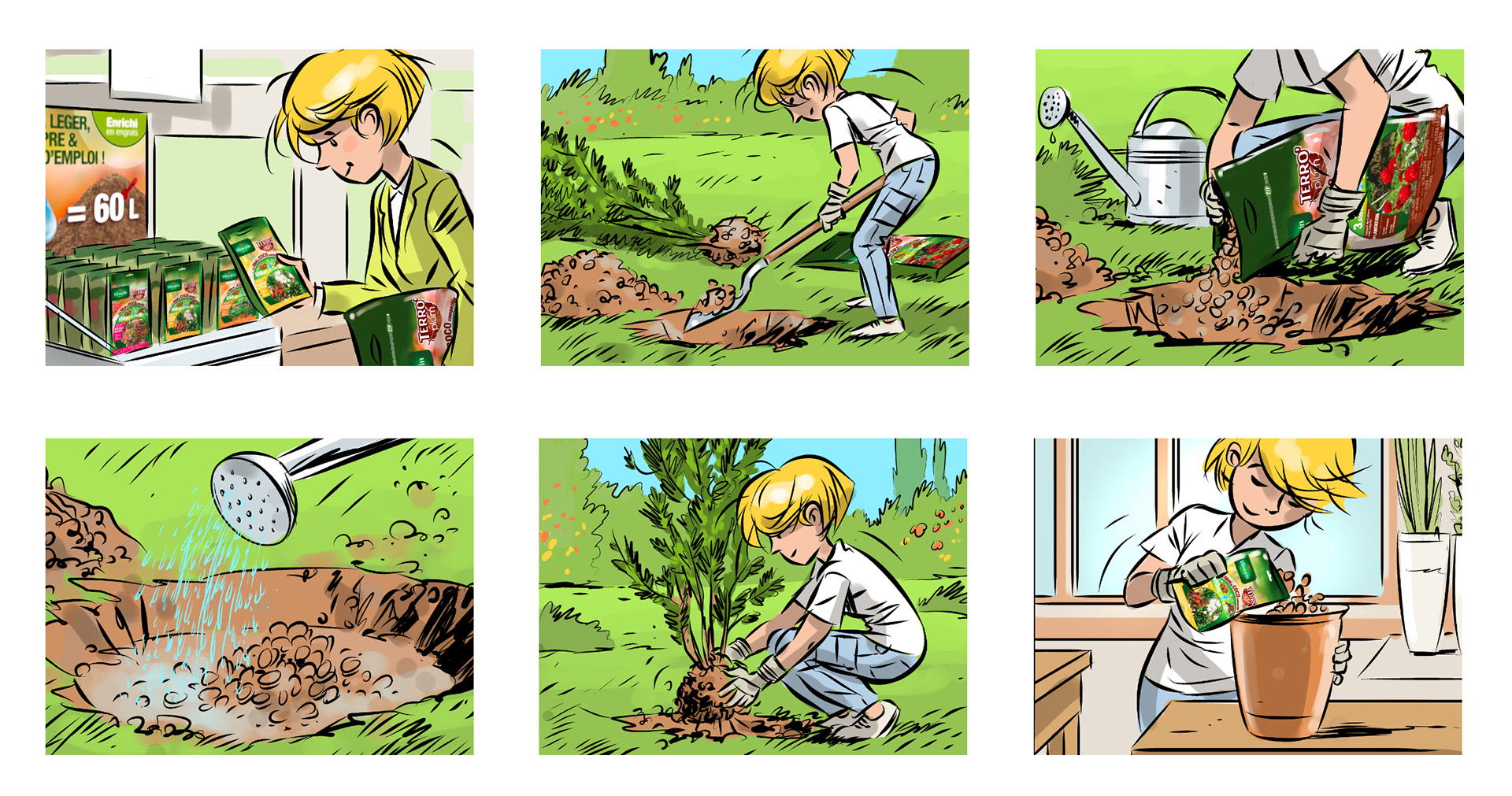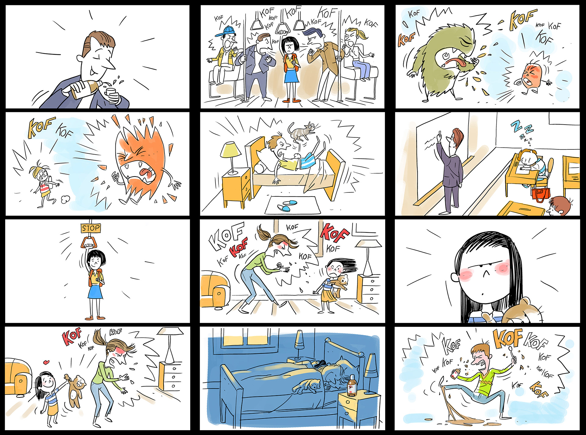 Story-board pour un film en animation pour un sirop contre la toux -